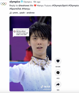 TikTok上的官方奥林匹克账号展现了日本花样滑冰选手羽生结弦在赛场上的精彩表现。
