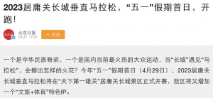 你知道在中国长城上可以举办马拉松比赛吗?这听起来就像是一生中难得的体验。有些人喜欢参观历史遗址,以获得更多了解历史或文化的机会。而其他人则更喜欢一些充满激情的活动。