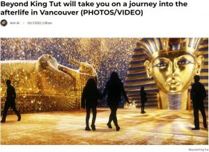 虽然图坦卡蒙并不是新鲜事,但是当“超越图坦卡蒙:沉浸式体验”开始其北美巡回展览时,这位古代法老出现在了新闻中。这个展览在主要城市得到了热烈的好评并卖断了票。通过在承办场馆的墙壁和地板上使用高分辨率数字投影,游客们被带回到古埃及文化时代,并深入了解他的陵墓。