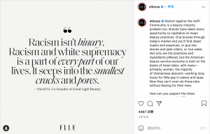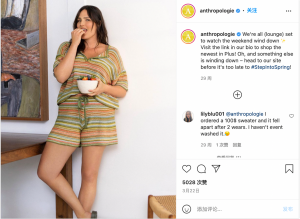 看看Anthropologie的帖子——如果没有照片说明,你只会看到一个女人在吃一碗水果。然而,照片说明将我们的注意力引向了最新的春季休闲装潮流。