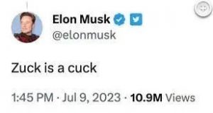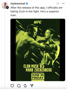 马斯克采取了行动。Threads正式发布的同一天,Twitter威胁要起诉Meta的这款新应用程序。周日,马斯克在Twitter上称扎克伯格为“cuck”(形容软蛋等贬义词)。然后,他向扎克伯格发起挑战,比拼特定身体部位的尺寸,并比较哪个更大,附带一个尺子的表情符号。扎克伯格没有回应。(在Threads被宣布之前,马斯克单独挑战扎克伯格进行“笼中格斗”。)