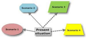 在一切都难以确定的环境下,我们无法做出常规的分析,所以预测未来是不可能的。情景设计将一些特定策略下的风险和机会暂且搁置,做出的是适用于种种可能性的策略。这些情景,每个都描述了一个具体的可能性的世界。这种方法的规划周期通常是三到五年。